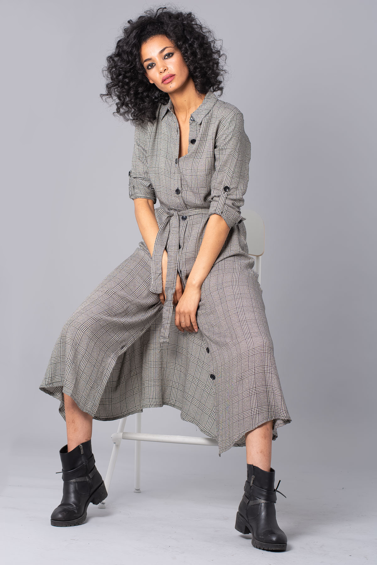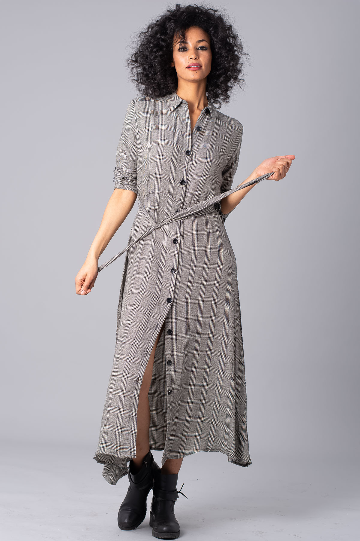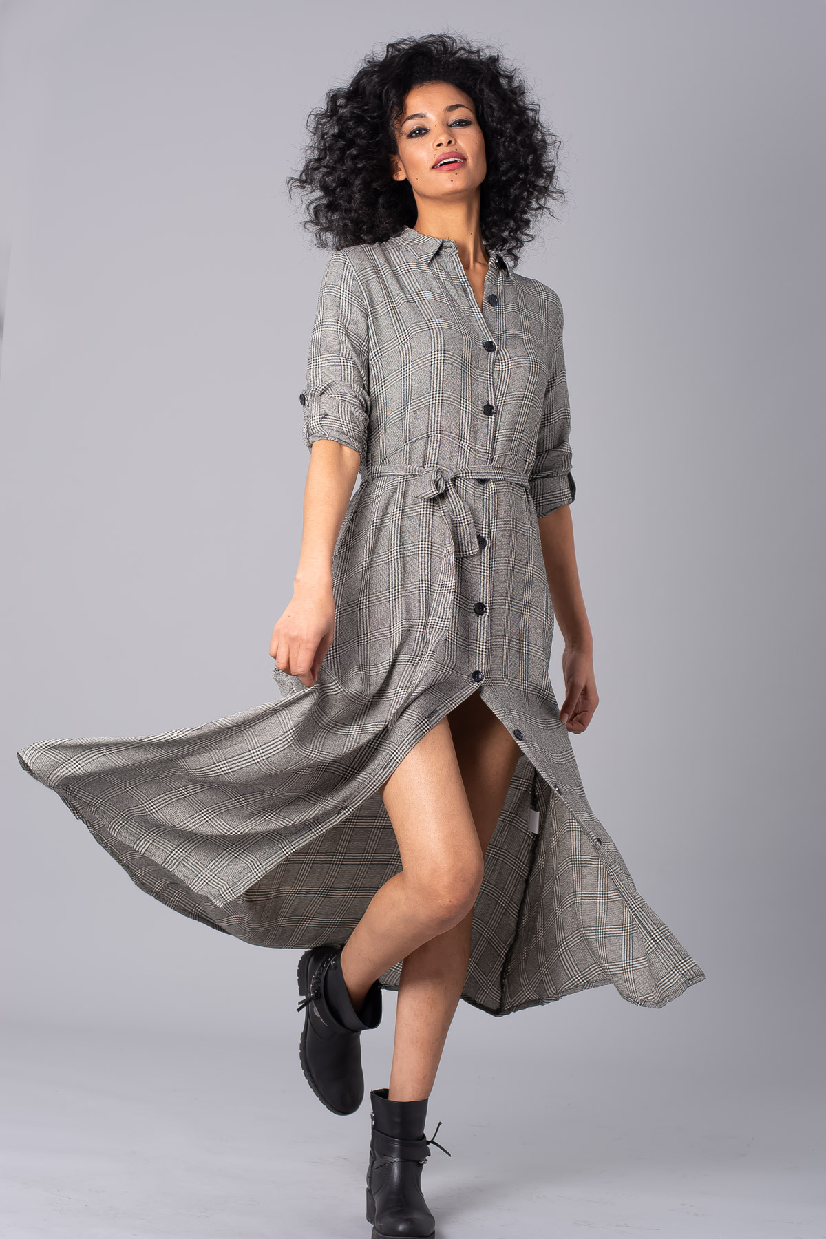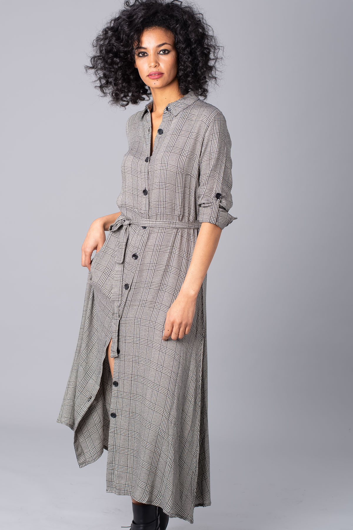 Gri Önü Bağlamalı Kuşaklı Elbise