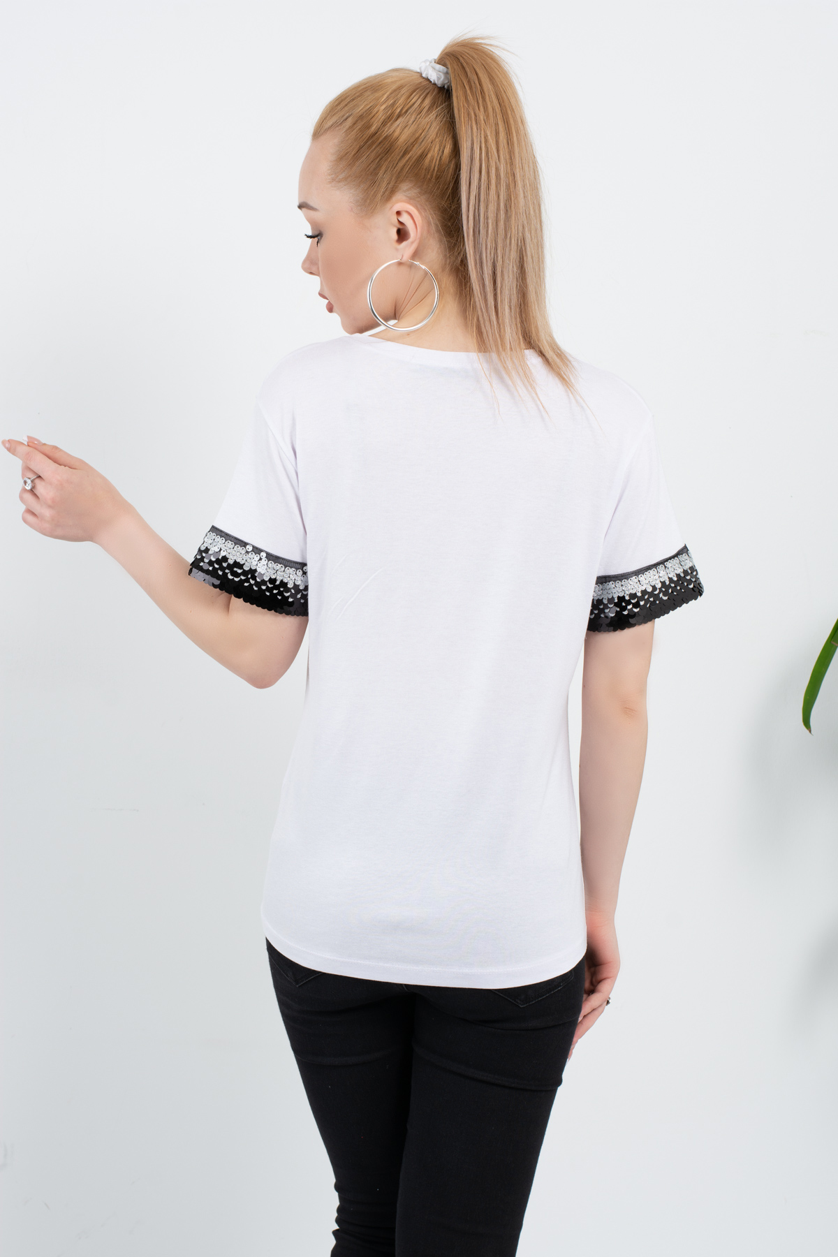 Beyaz Salaş Payet Ve Kol Detay Bluz